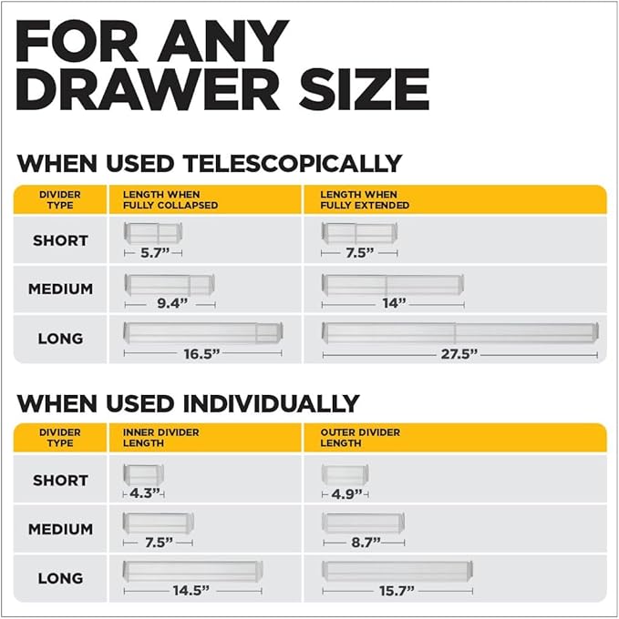 - CUSTOMIZABLE FIT : Flexivider's unique telescopic design allows for easy adjustment to fit any drawer size, offering a personalized organization solution.