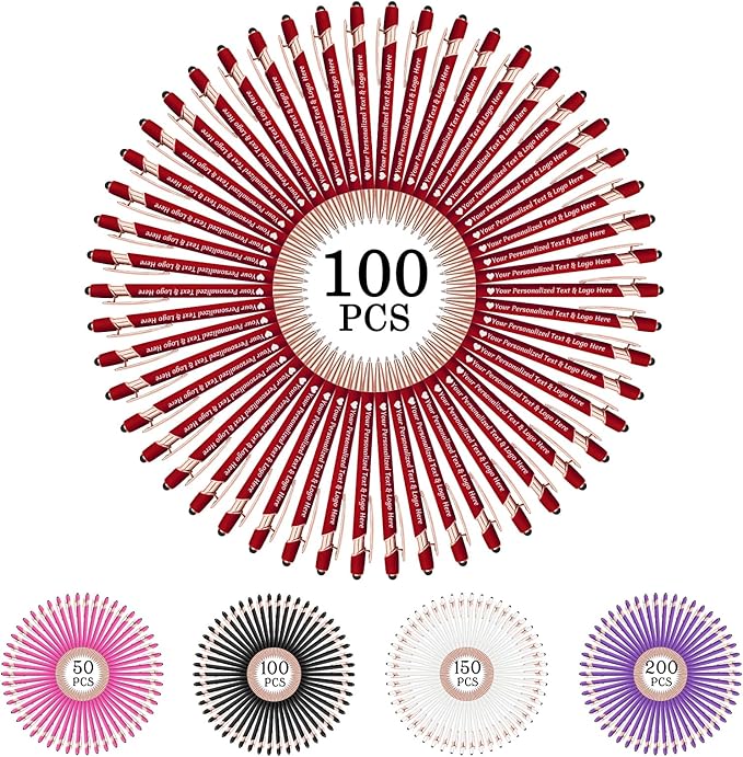 STREADVE 100 Personalized Custom Pens Engraved Writing Pen with Name Logo, Customized Promotional Items Stylus Pen Gifts for Communion Wedding Men Women Realtor Business, Deep Red