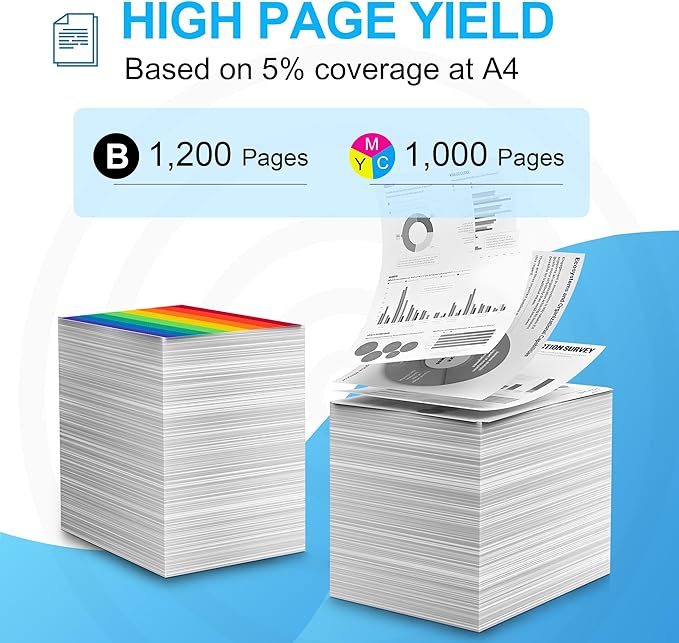 - Page Yield: Up to 1,200 pages black toner cartridge & 1,000 pages per color toner cartridge (at 5% coverage/A4 letter)