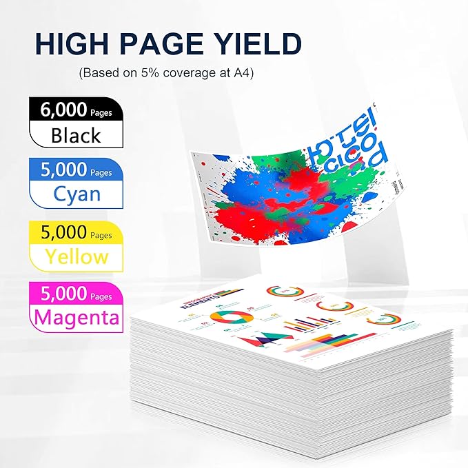 - High Page Yield: 6,000 pages for 508A CF360A black toner cartridge and 5,000 pages for per 508A CF361A CF362A CF363A color toner cartridge based on 5% coverage (Letter/A4)