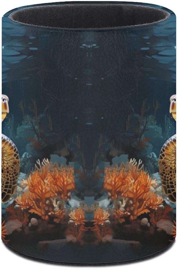 Sea Turtle Pen Holder Pencil Organizer Cute Pencil Cup Desk Decor Makeup Brush Holder PU Multifunctional Office Suppliesfor Home Classroom School