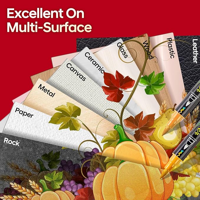 - CREATIVE GIFT: No matter in any occasion, this acrylic markers paint pens will delight and inspire the recipient, the dual tip markers is perfect as a gift for Easter, Halloween, Christmas, Valentine's Day, Thanksgiving, New Year or special holiday gifts for families, friends and rock painting enthusiasts. If you are not satisfied with our acrylic paint pen or have any questions, please feel free to contact us at any time.