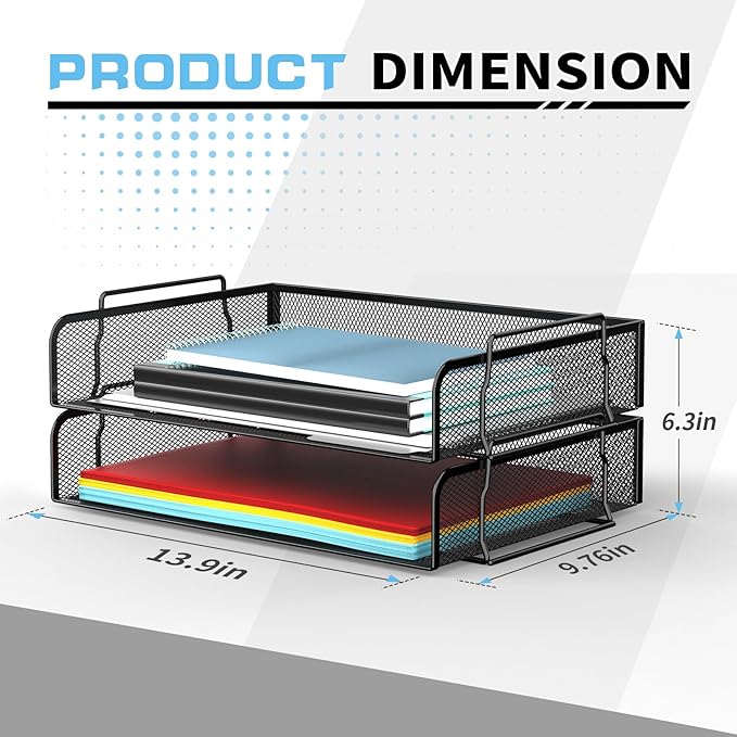 - ✏️ 【Stackable Design】 Stackable trays help maximize desk space while keeping documents within easy reach.