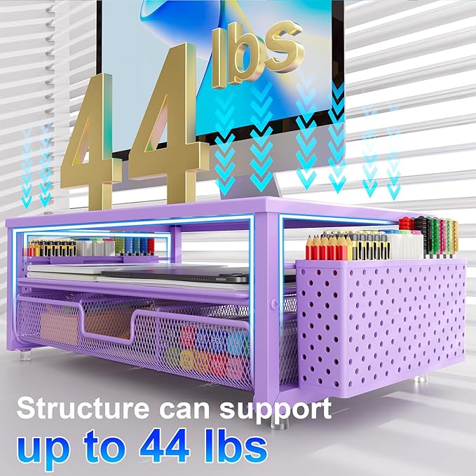 - 【Unique Desk Decor】: The monitor stand has a classic purple coating, adding elegance and modernity to your office while being sturdy and practical. allowing you to work in a cozy and tidy environment with greater comfort and efficiency.