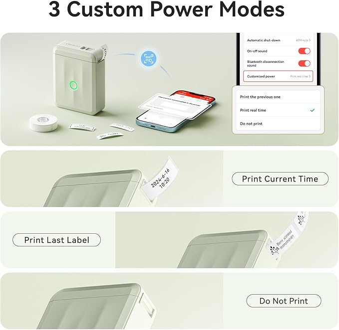 - 【Label Options and Organization】With Intelligent Identification technology, this mini label maker can automatically recognize the label you put in, support a variety size and kind of label paper, such as clear, colorful, cute gift tapes and round labels. The label refills is waterproof and Oil-proof, which can be widely used in Home Kitchen and School. (This label maker is monochrome printout, which only prints black text. We can create color labels buy using color pattern label tapes.)