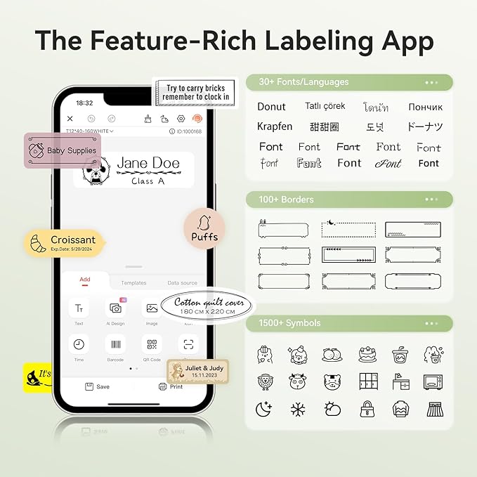 - 【Easy To Use】The bluetooth label maker with tape supports batch printing and wireless connection with ''NIIMBOT'' APP, which is simple setup & installation. No ink or toner required, compatible with IOS & Android smartphones. Fully charged in Only 2 hours with Type-C charging cord. Note: This label maker doesn't work with computers.