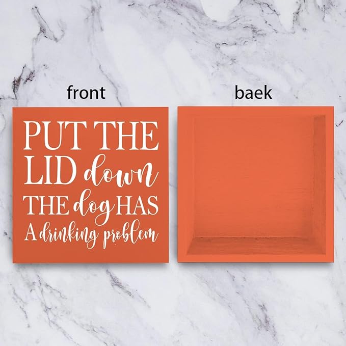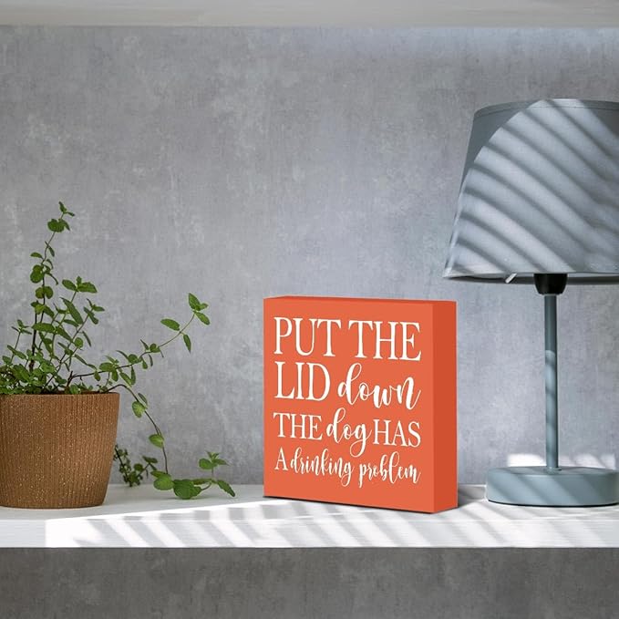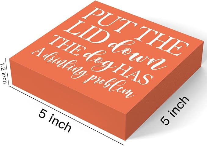 mmiishe Funny Home Decor for Bathroom, 'Put The Lid Down, The Dog Has A Drinking Problem' Sign, Rustic Wooden Decorative Sign, 5 x 5 Inches