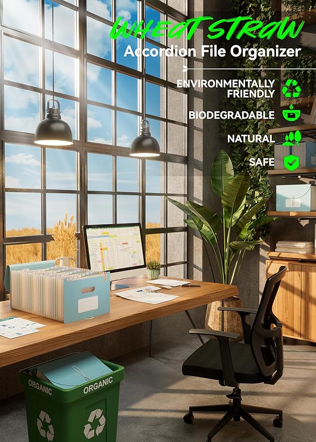 - 【Wheat Straw Material】Ecostash's Wheat Straw Accordion File Organizer are BPA-free, making them safer and healthier compared to plastic and paper file folders. Unlike plastic and paper hanging folders, wheat straw material is sourced from renewable agricultural waste, reducing dependence on petrochemical plastics and forest logging. This helps reduce greenhouse gas emissions, making a collective contribution to protecting the Earth's ecology.
