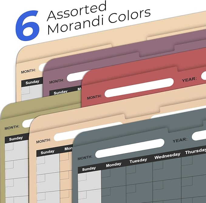 Y YOMA 6 Pack File Folder Jackets Letter Size Paper Pocket File Folder with Reinforced Straight-Cut Tab Pre-Printed Job Folders No Expansion Organizer for Office, Assorted Colors, Calendar Design