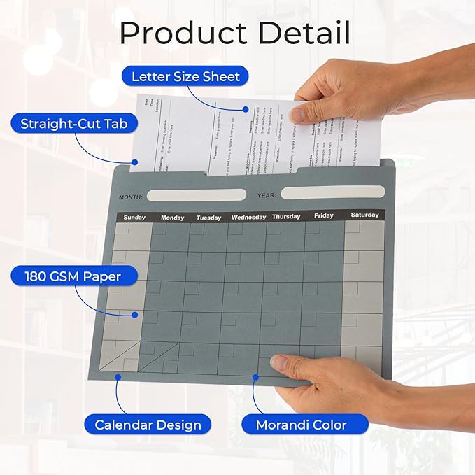 - Calendar Design - Each file jacket features a blank calendar on the surface, allowing you to fill in the months and days as needed, providing a visual aid to keep track of your daily schedule and avoid missing important information