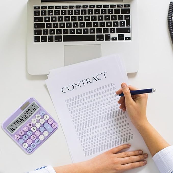 - Quality & Appearance - Purple Calculator large display for women is made of durable ABS to ensure normal daily use. The typewriter-style clean lines and retro round keys and reasonable button layout make it beautiful and practical, perfect size, fits right on the desk and does all you need in a tight spot.
