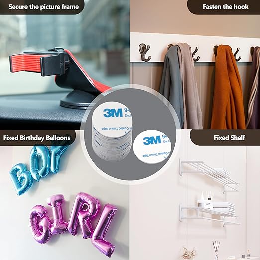 - 【Widely applicable】: Our double-sided adhesive pad can be widely used to fix various flat surface materials, such as metal, plastic, wood, etc. They are also suitable for various DIY art crafts, parties, weddings, home decor and other occasions. Please note: Do not stick the adhesive pad to rough, textured, greasy surfaces or leather surfaces