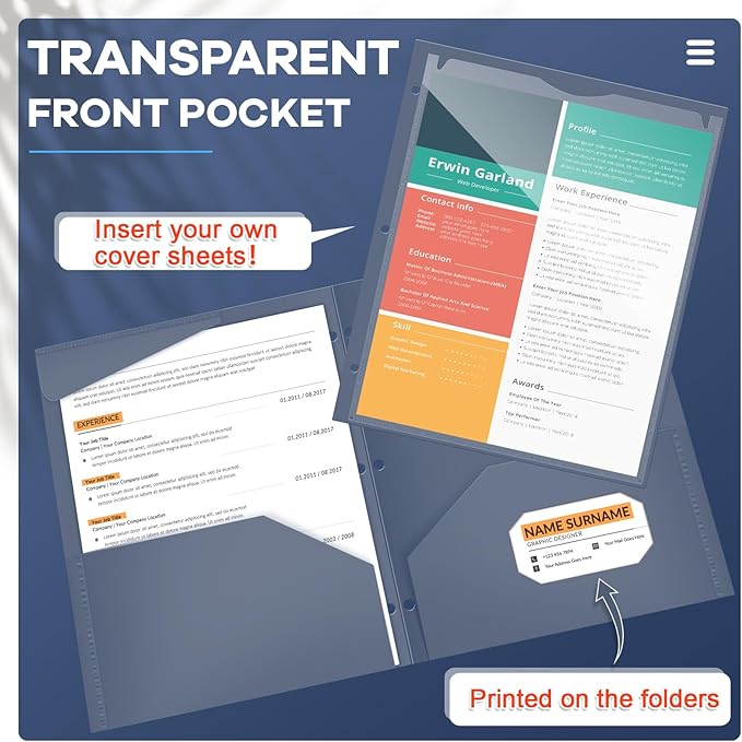 - Easy Organization: each plastic pocket folder features with 3 holes in one side, which enables you to put it into a standard 3 ring binder to organize loose documents, and clear front pocket of each folder help to store other items, giving you a comfortable using experience