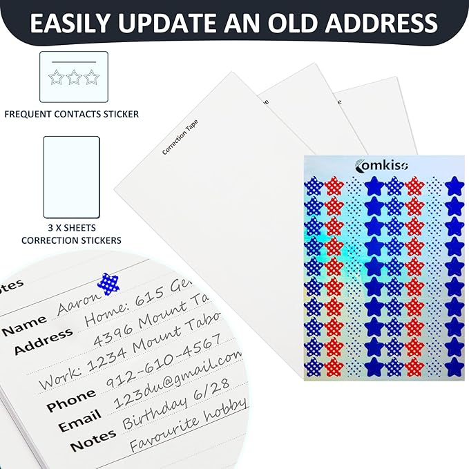 - Make Contacts More Organized - It's useful to back up your computer and cell phone contact list on paper. Comkiso address book with alphabetical tabs promotes convenient contact organization. You can write down and safely store names, phone numbers, emails, notes, and addresses in one spot.