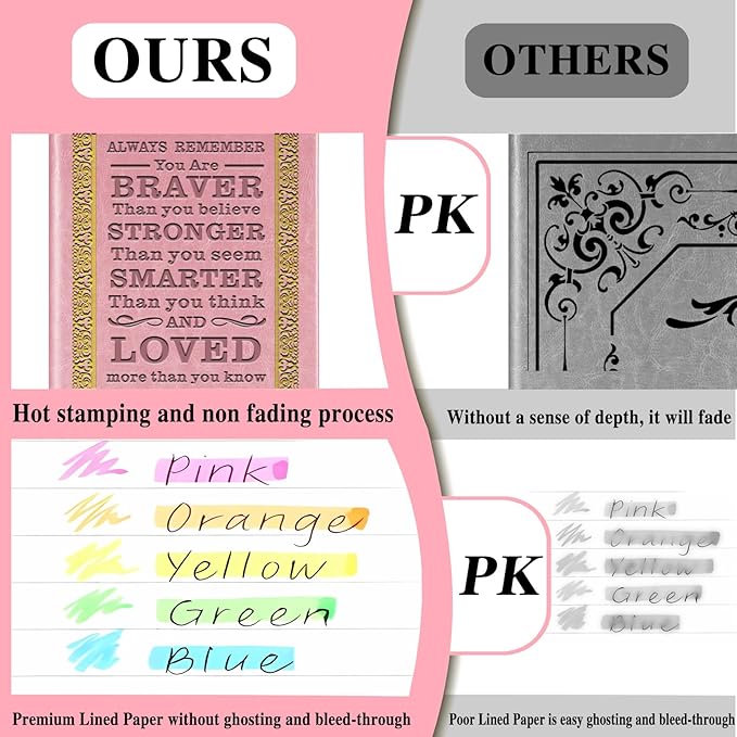 Pink A5 Lined Leather Journal Notebook,Inspirational Leather Journal Notebook for Men Women,200 Pages 100 Gsm Thick Ruled Paper Daily Diary for School,Travel,Business,Work (Pink)