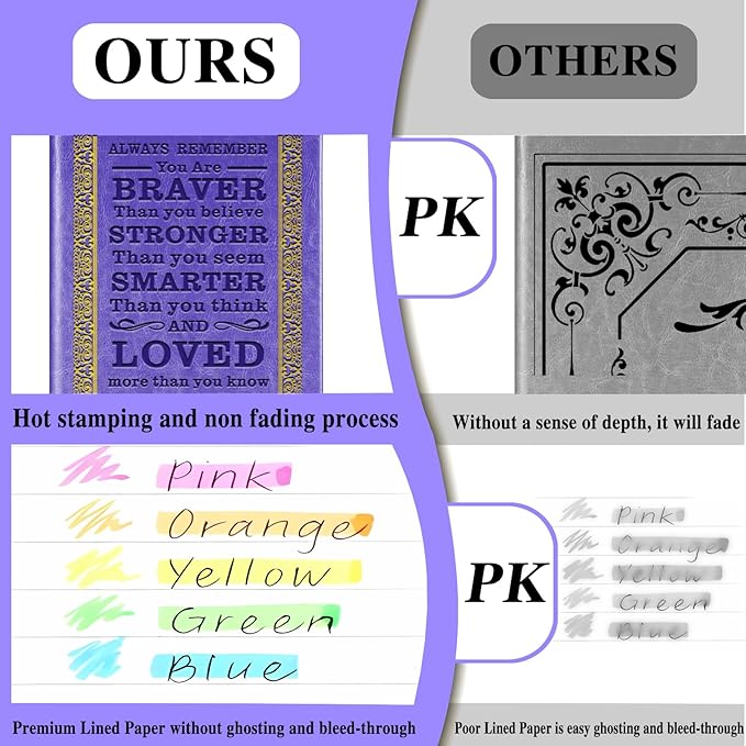 Purple A5 Lined Leather Journal Notebook,Inspirational Leather Journal Notebook for Men Women,200 Pages 100 Gsm Thick Ruled Paper Daily Diary for School,Travel,Business,Work (Purple)
