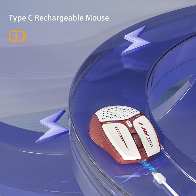 - INNOVATED HONEYCOMB & MAGNETIC COVER DESIGN:The honeycomb & magnetic cover design of the back shell of the mouse not only has a beautiful and unique mecha-style appearance but also has a very practical function with breathable heat dissipation, and the USB receiver is stored in the mouse and just needs to remove the magnetic cover and take out. It's convenient, and don't worry about losing your mini USB receiver.