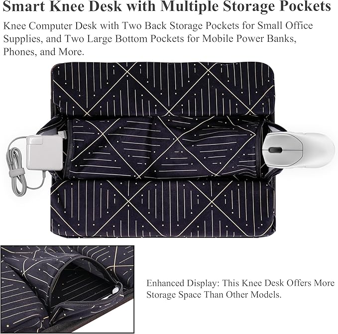 - More Storage Space for Your Convenience: With two storage pockets on the back and two large storage bags at the bottom, our lap desk provides ample space for your office items, power banks, and mobile phones.