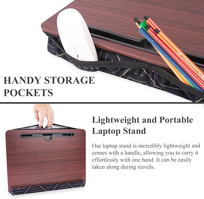 - Lightweight and Portable for Easy Travel: Weighing only 2lbs, our lap desk is easy to carry with its storage pocket that doubles as a handle. Work from anywhere, whether it's home, office, dorm, school, bed, or sofa.