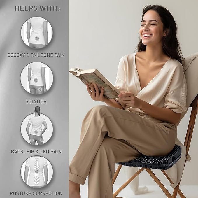 - 【Ergonomic Design & Help Relieve Pain】According to the design of human body curve, perfectly fits the buttocks curve, disperses the pressure of the whole buttocks and thighs. Helps prevent sciatica, posture collapse, prolonged hemorrhoids, postoperative and postpartum analgesia, and pelvic problems caused by prolonged sitting.