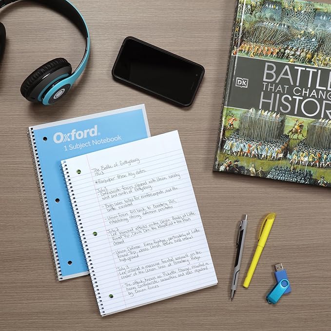 Oxford Spiral Notebooks, 3 Pack, 1 Subject, College Ruled Notebooks for School, 8 x 10.5 Inches, 70 Sheets, Assorted Pastel Colors, Back to School Supplies (1002540)