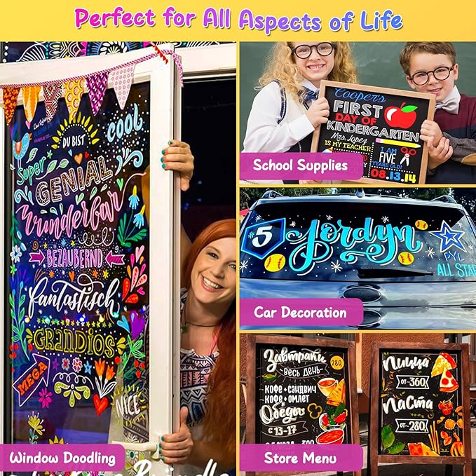 - SAFE AND NON-TOXIC: The water-based ink of these thin chalk markers ensures easy usage without releasing any pungent odor. No matter if you're a teacher, mom, student, art enthusiast, or own a bistro or coffee shop, these chalks offer a comfortable experience. Ideal for everyone.