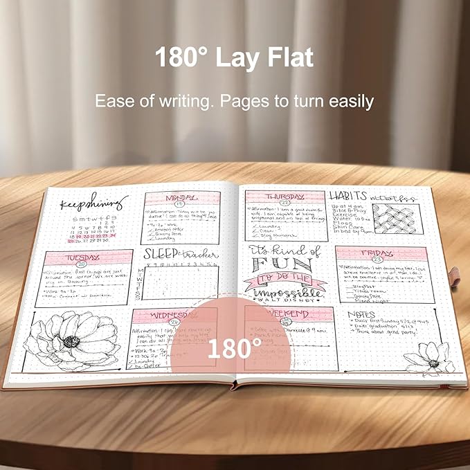 - LAY FLAT DESIGN FOR WRITING: The thread-bound design allows this notebook to 180° lay flat, ensuring easy writing and reading for both right and left-handed users without awkward hand positions. This provides an ideal ergonomic writing experience