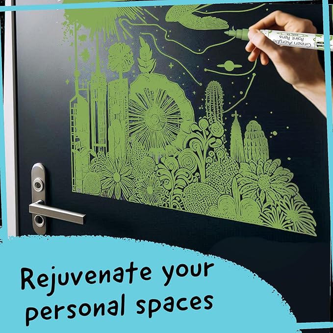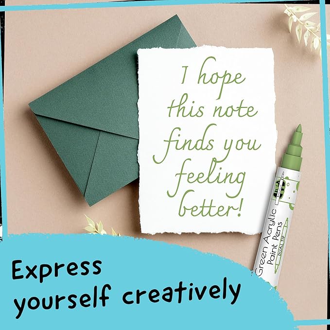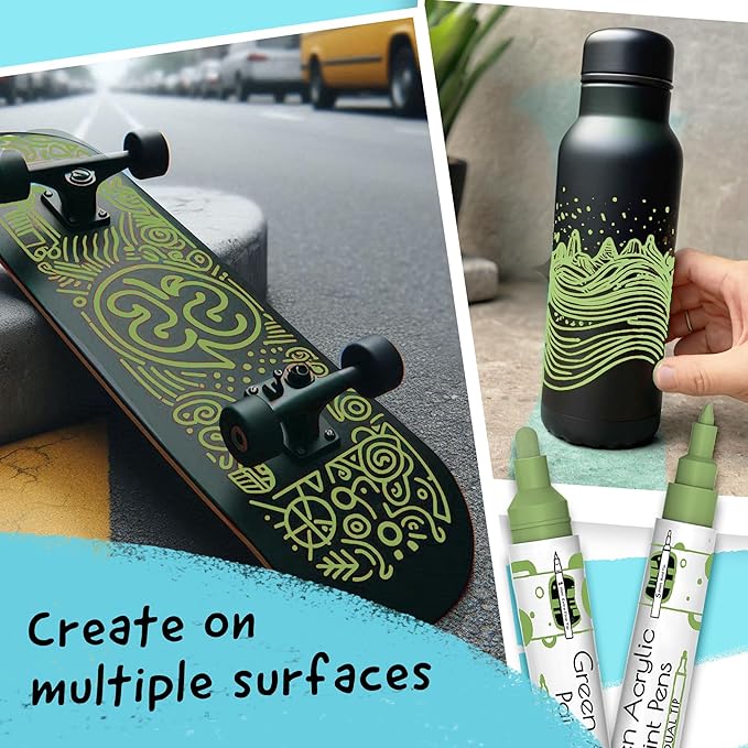 - Green Paint Pens Metallic - Highly pigmented, Quick to dry & used as paint markers for canvas, paint markers for wood, or as glass paint markers, rock painting pens, on wine glasses & ceramic paint pen (dishwasher safe ink)