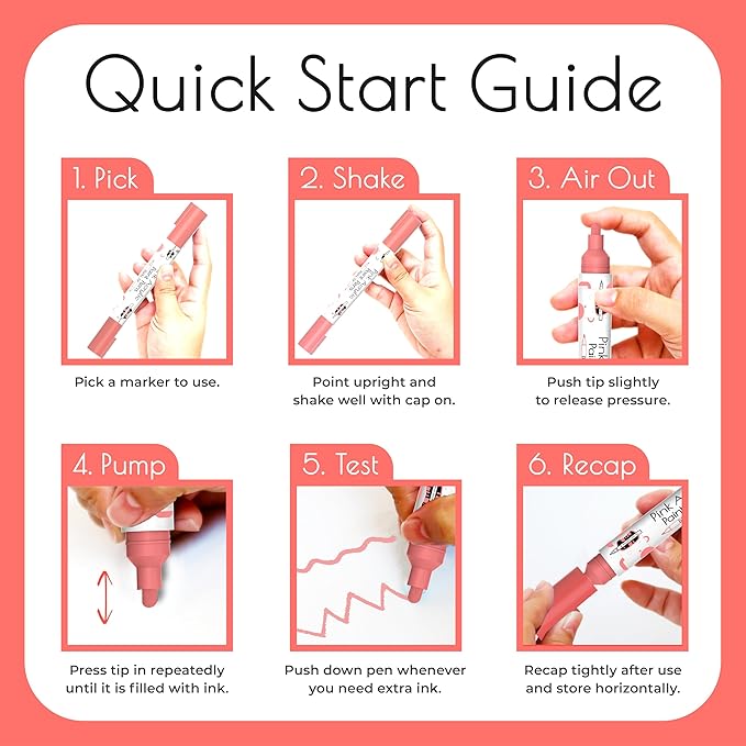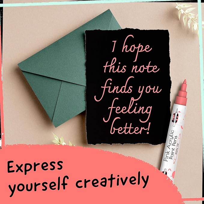 - Pink Paint Pens Metallic - Highly pigmented, Quick to dry & used as paint markers for canvas, paint markers for wood, or as glass paint markers, rock painting pens, on wine glasses & ceramic paint pen (dishwasher safe ink)