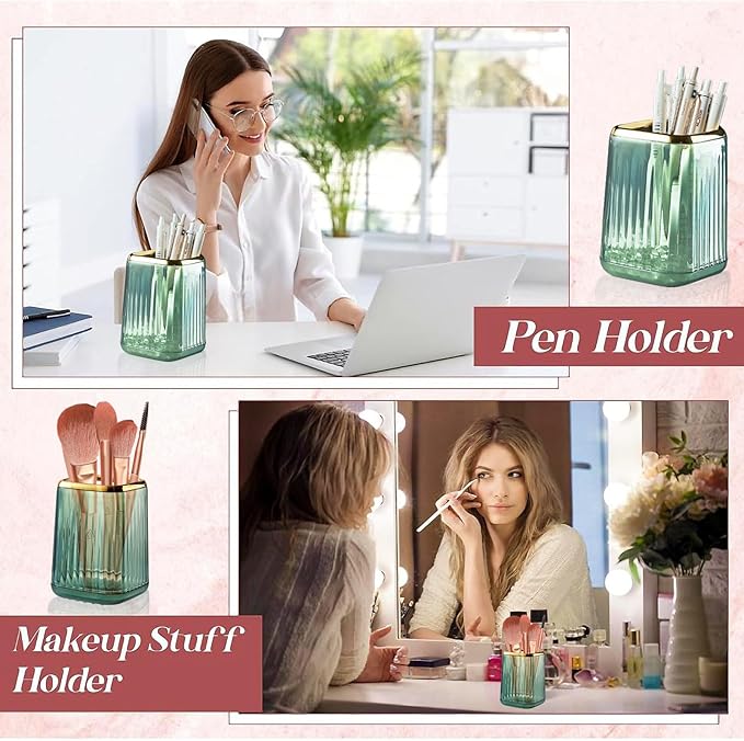 Pen Holder for Desk, Makeup Brushes Cup, Desk Organizer Desktop Supplies and Accessories for Women, Pen Cup Pencil Caddy for Office Home Art Supply (dark green)