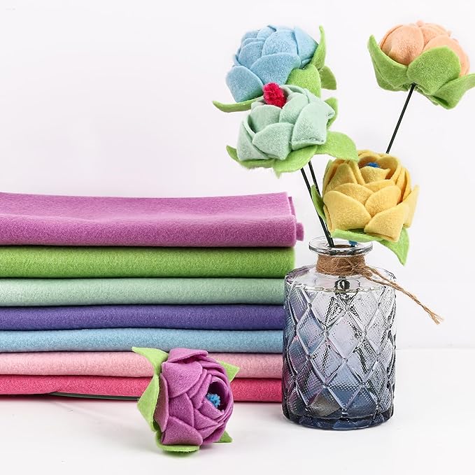 - 【Soft Felt Fabric】:This colorful non-woven fabric combination is a high quality polyester fiber material product.Soft felt roll is very easy to use, pre-cut into various shapes, easy to cut. And its softness is high because it does not wrinkle or lose its shape. Therefore, it is widely used in various sewing felt sheets for crafts product.