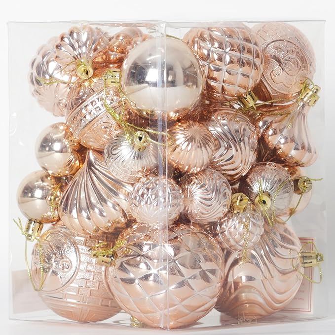 Christmas Ornaments Set with 36pcs Shatterproof Christmas Tree Decorations Multi-Size Christmas Ball Ornaments with 7 Styles Champagne