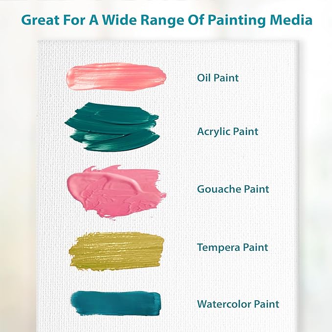 - PAINT CANVAS FOR KIDS & ADULTS : A canvas board hat works perfectly with acrylic, tempera, oil, watercolor, gouache, and pour paint. Express your creativity with these variety of sizes. Ideal for creative projects, paint canvas for kids, school assignments, art classes, paint parties, home interior decor, and more.