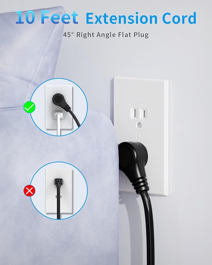- 10 FT Extension Cord with Multiple Outlets: The 10 FT flat plug extension cord with multiple outlets and soft rubberized material wraps 100% made of copper extension cord for durability and energy efficiency. Provides you with a convenient way to supply power.