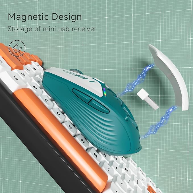 - CONVENIENT STORAGE DESIGN: The detachable magnetic case unique design stores the USB receiver inside the mouse, making it easy to take out and then plug it into your PC to use.