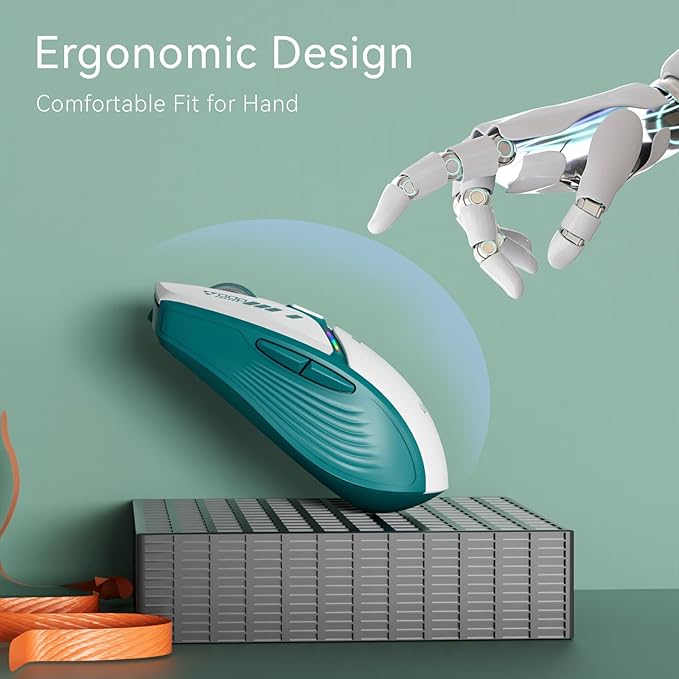 Uciefy V19 Wireless Mouse, 2.4GHz Rechargeable Mouse LED with Battery Indicator, Magnetic Computer Mice with USB Receiver & Type-C Adapter for Laptop/PC/Mac/Chromebook - Green