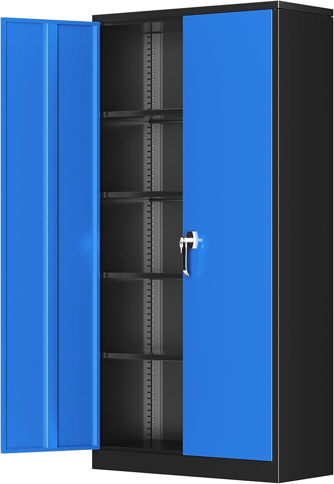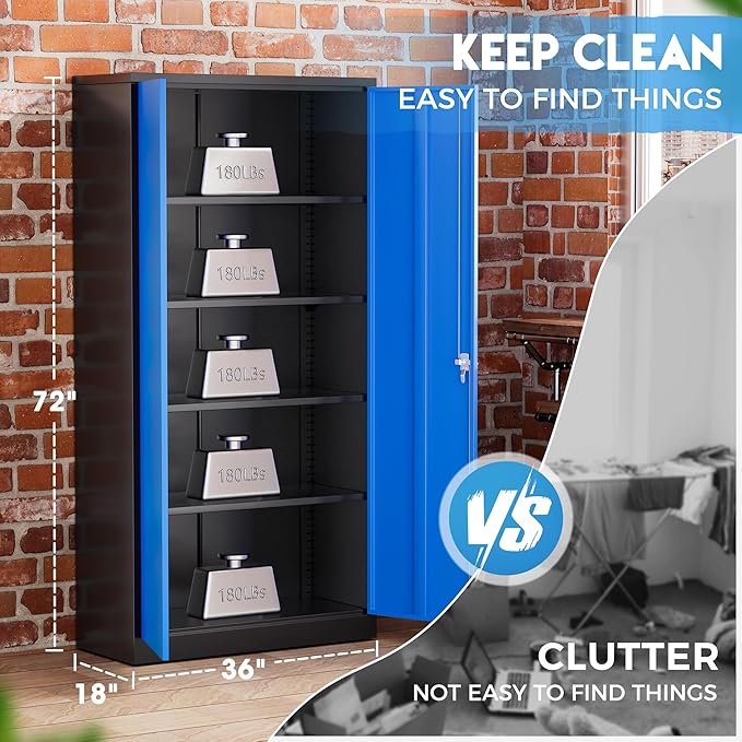 Greenvelly Metal Garage Storage Cabinet,72" Steel Storage Cabinets with Doors and Adjustable Shelves, Metal Tool Cabinets, Locking File Cabinet for Home Office, Garage, School (Black Blue36 Wx18 D)