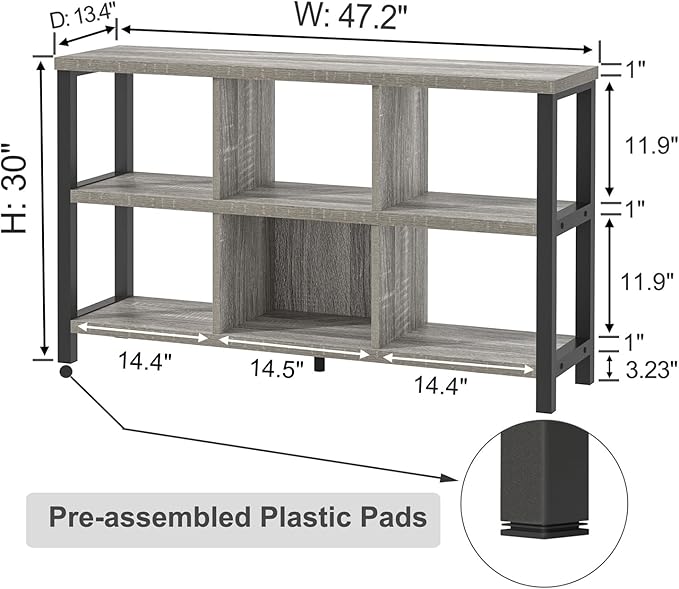 - Modern Horizontal Bookshelf: With light gray wood grain finish and black metal frames, this 6 cube storage organizer seamlessly blends modern and industrial styles. The fusion of decor and functionality makes this industrial bookshelf a versatile addition