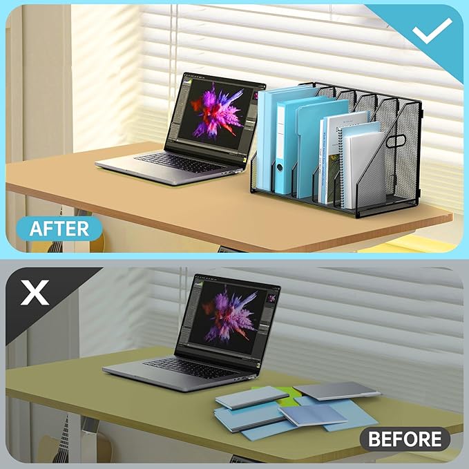 - All-in-one Desktop Oganizer: This book organizer with 5 vertical use spaces can effectively organize your workspace, provide easy access to important items and increase your work efficiency.