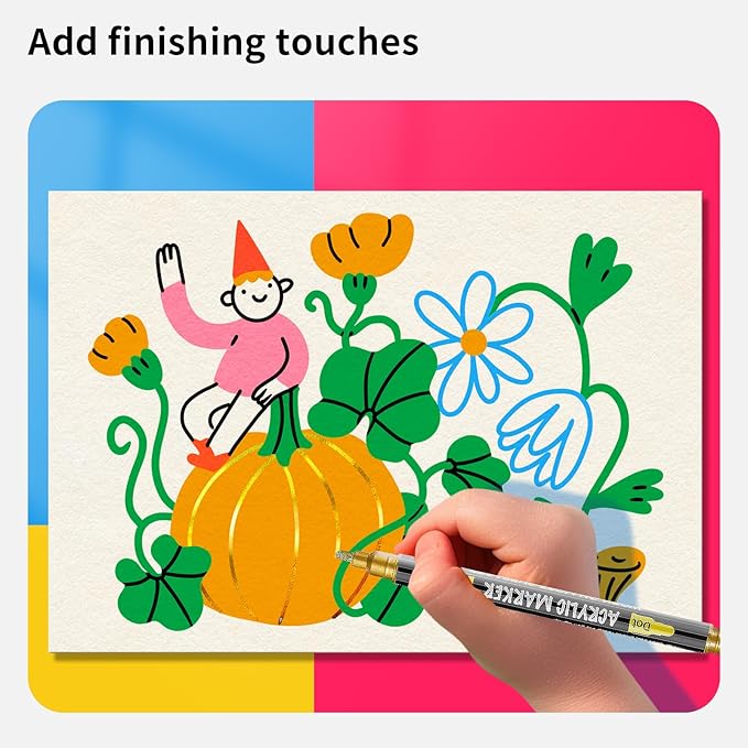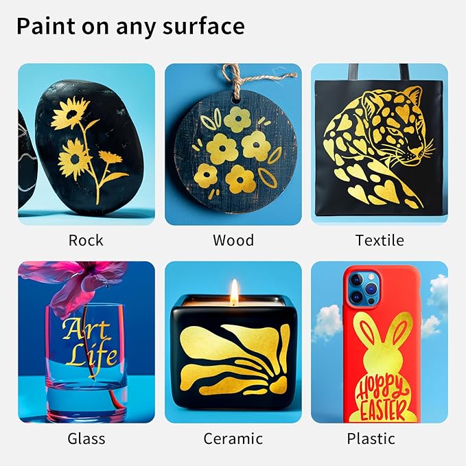 - PREMIUM QUALITY: This gold-pack of paint pens features high-quality acrylic paint and a durable nib that dries opaque, so you don’t have to make a second layer! The gold permanent paint marker is acid-free, waterproof and wear resistant. It’s a great tool for art projects, DIY crafts, coloring, greeting cards, poster making, painting, highlighting.