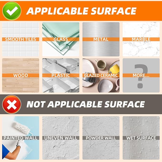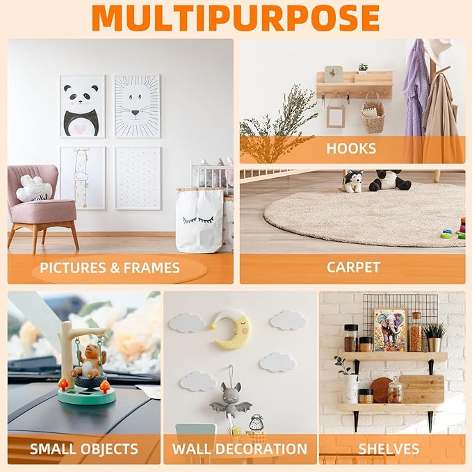 - 【Widely Versatile Use】- This clear double sided tape could stick to almost any smooth surface, like Household living room, bedroom, kitchen, toilet. You could use it to fix or stick items, such as carpets, photos, frames, wall stickers, posters, hooks, phone holders, power outlets, decorations.