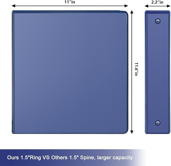 - 1.5" ring not 1.5" spine, larger capacity:These binders features a vibrant and visually appealing color or a combination of colors, making it stand out.