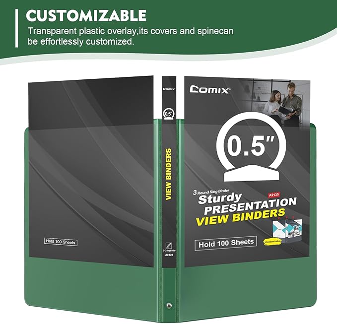 - Customizable:View binder with a Clear View poly overlay allows you to customize the spine and both covers.