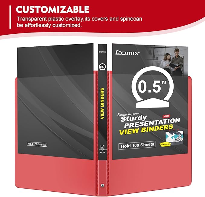 - Customizable:View binder with a Clear View poly overlay allows you to customize the spine and both covers.