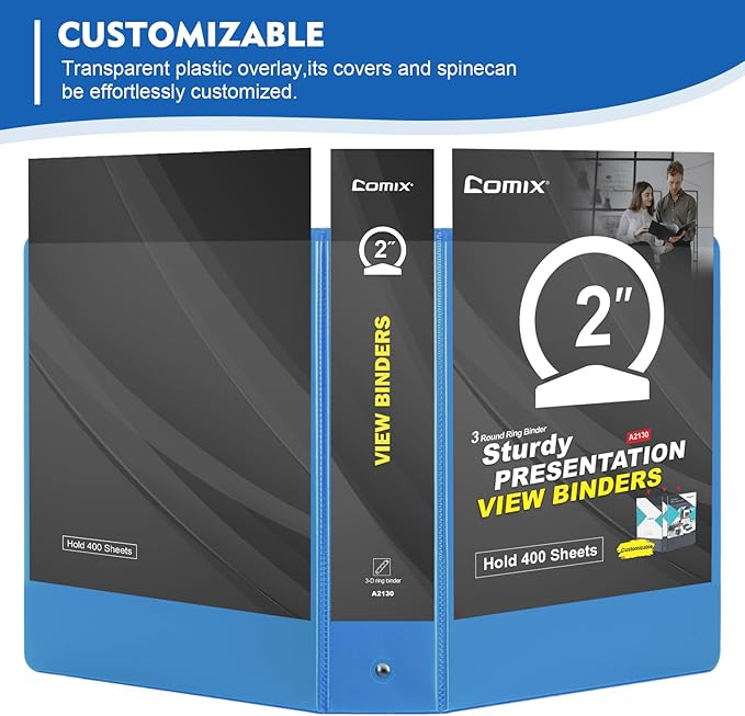 - Customizable:View binder with a Clear View poly overlay allows you to customize the spine and both covers.