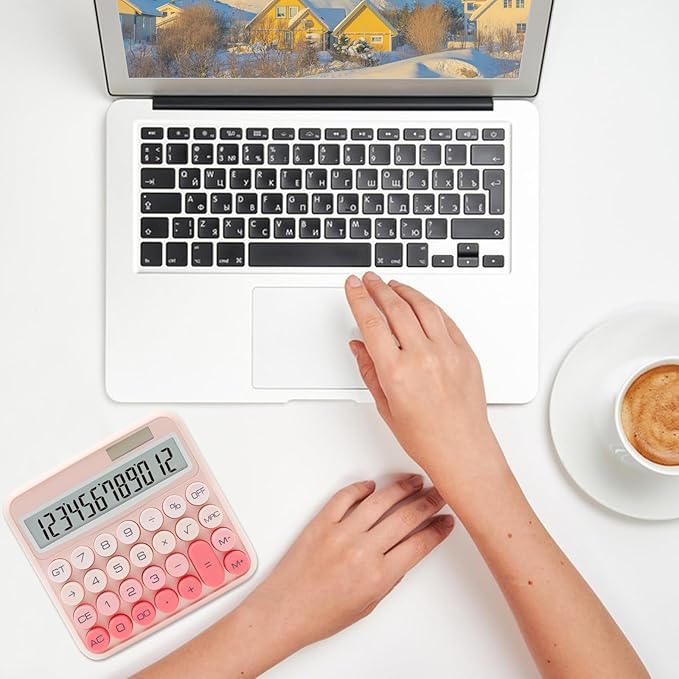 - Imitation Mechanical Keyboard Design - Our cute calculator make with large LCD display ,12-digit display.The big buttons imitating the knocking feel of a mechanical keyboard.Your calculation process will be faster and smoother with this calculator’s responsive buttons.