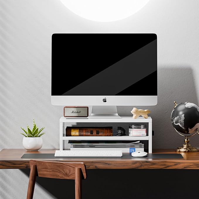 - 【EASY TO ASSEMBLE】 Marbrasse computer stand is easy to assemble, you just need to only take much less 10 minutes to assemble it according to the instructions. Assemble it 1 tier or 2 tier all depends on your needs.1 tier makes more space for storage, 2 tiers make desk organization easily, reduce the clutter