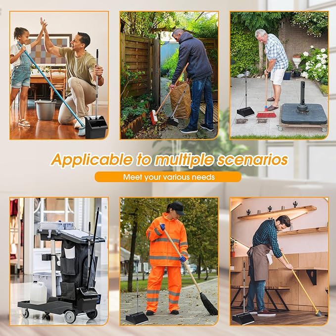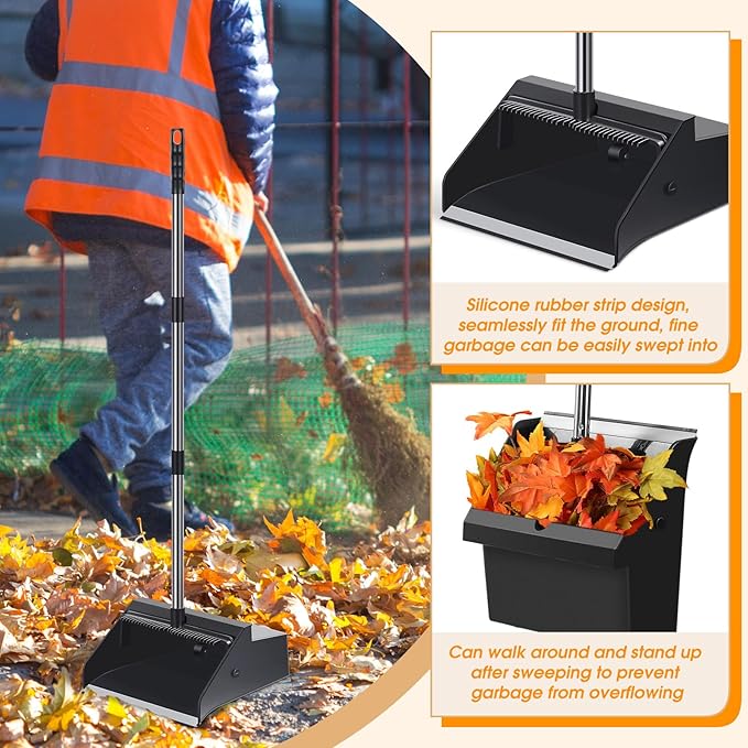 - Extended handle for easy use: The upright dustpan measures approximately 11 x 11.4 x 36.6 inches, which is an ideal size for easy cleaning. It provides ample dust and debris capacity, reducing the number of times you go back and forth to the trash can
