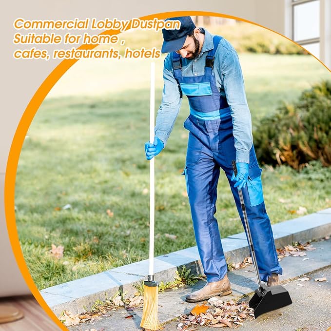 - Closed and Locking Head Dustpan Design: Commercial dustpan features a silicone rim design that fits the ground better, making it easier to remove dirt and quickly clean common areas; the locking pan locks into place, making emptying the dustpan even easier