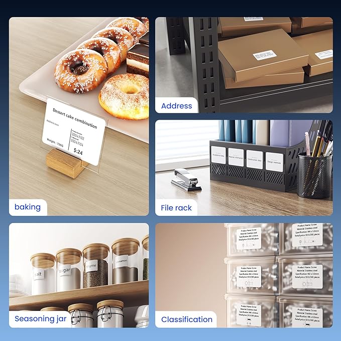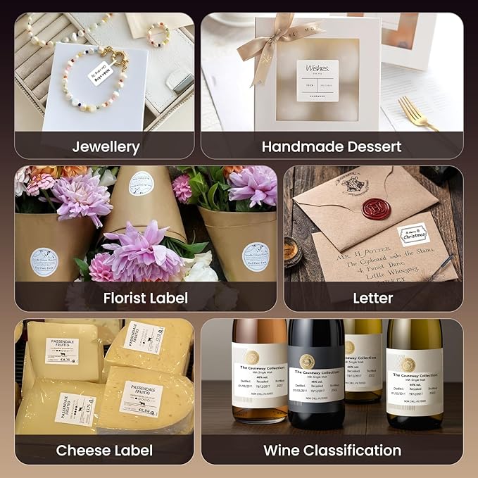 - Widely Application: The CLABEL label maker machine with tape has a wide range of applications and creativity. Like small businesses: clothing, crafts, retail, jewelry, etc. Label address, barcode, qr code, price, date, ingredients, and product labeling. Ideal for a variety of labeling needs, including Christmas, Halloween, Thanksgiving, Father's Day, Mother's Day